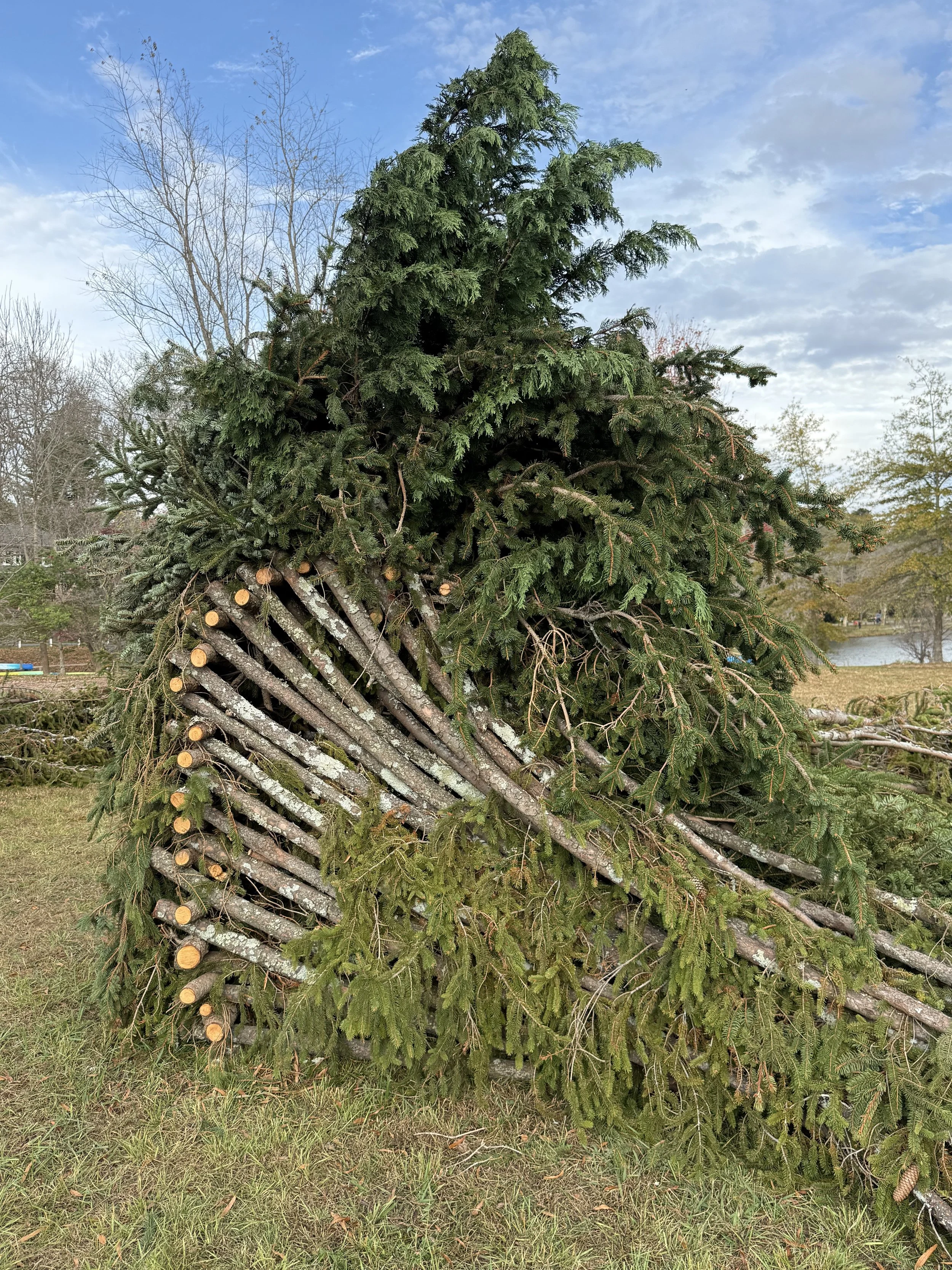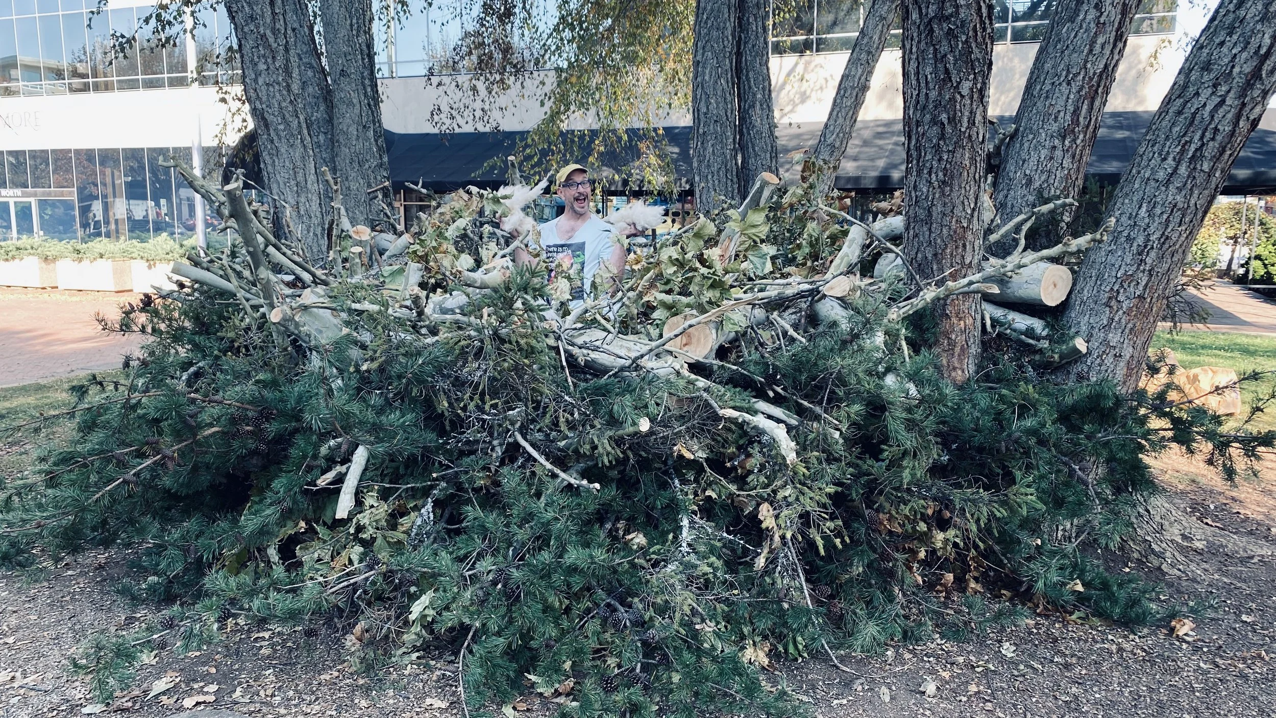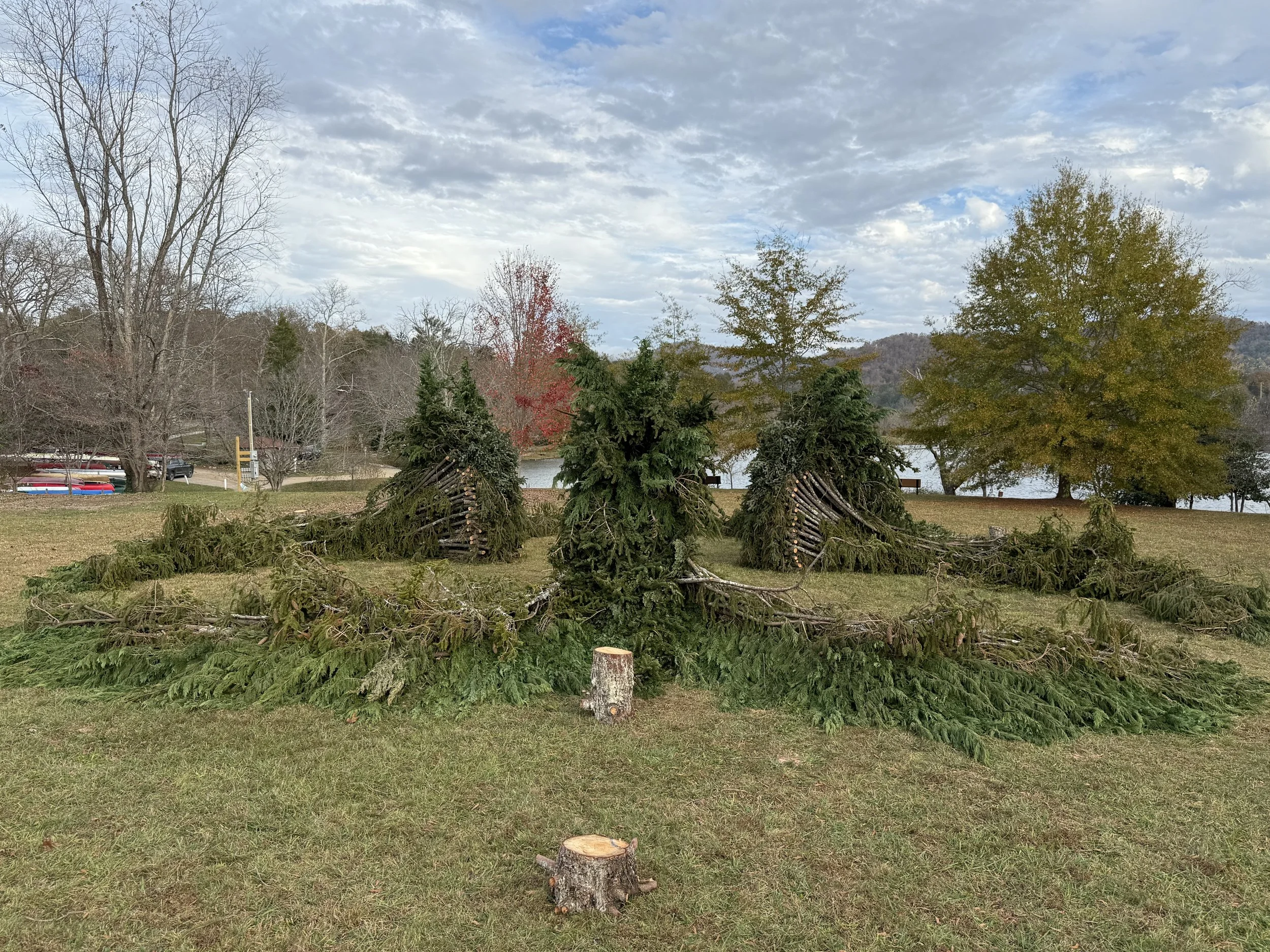 A funeral pyre made from the downed trees of Hurricane Helene is a profound statement, connecting themes of destruction, renewal, and impermanence. The act of repurposing the fallen trees into a pyre symbolizes a ceremonial closure, honoring what was lost while acknowledging the transformative power of nature.