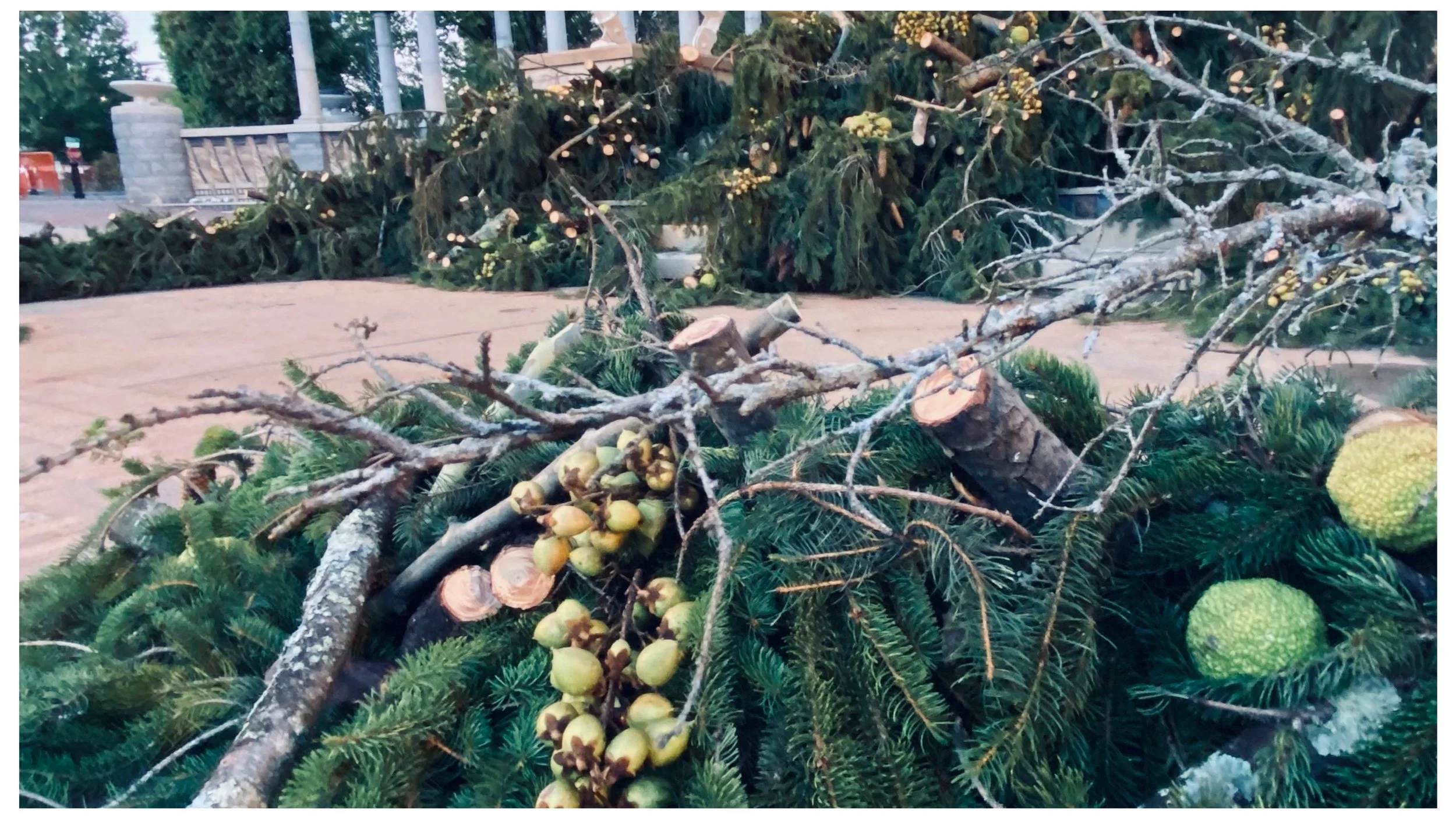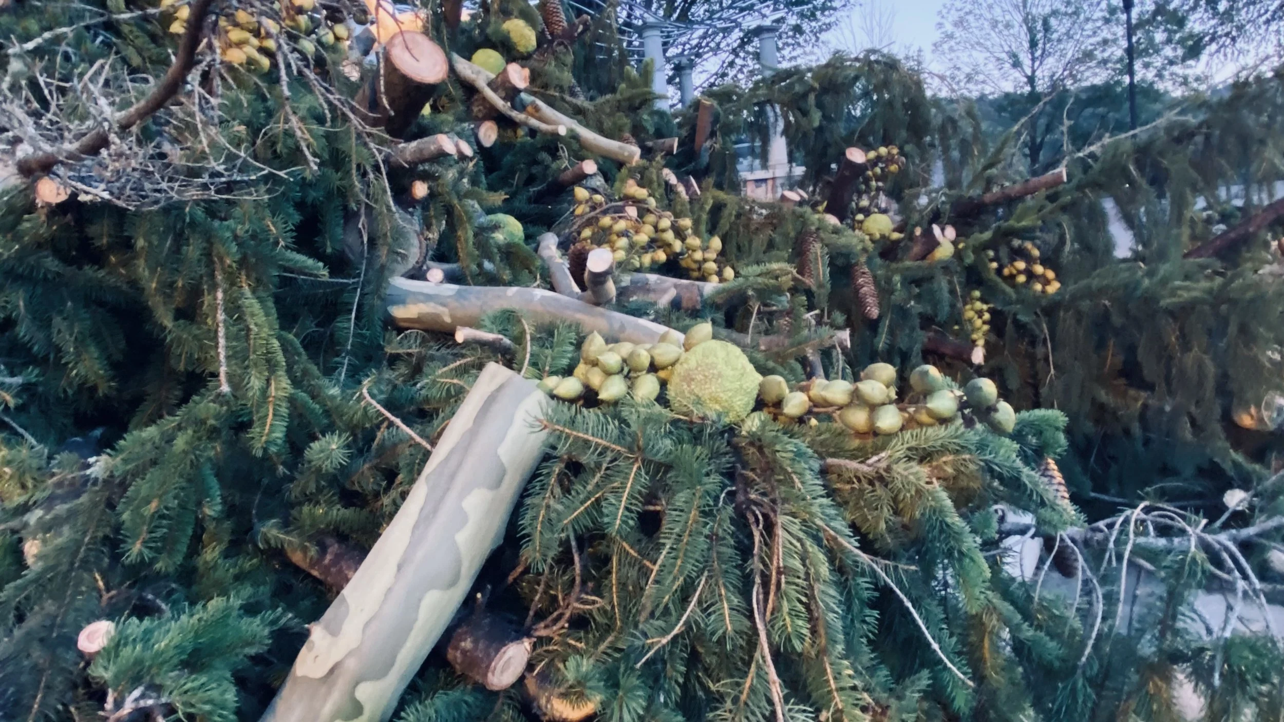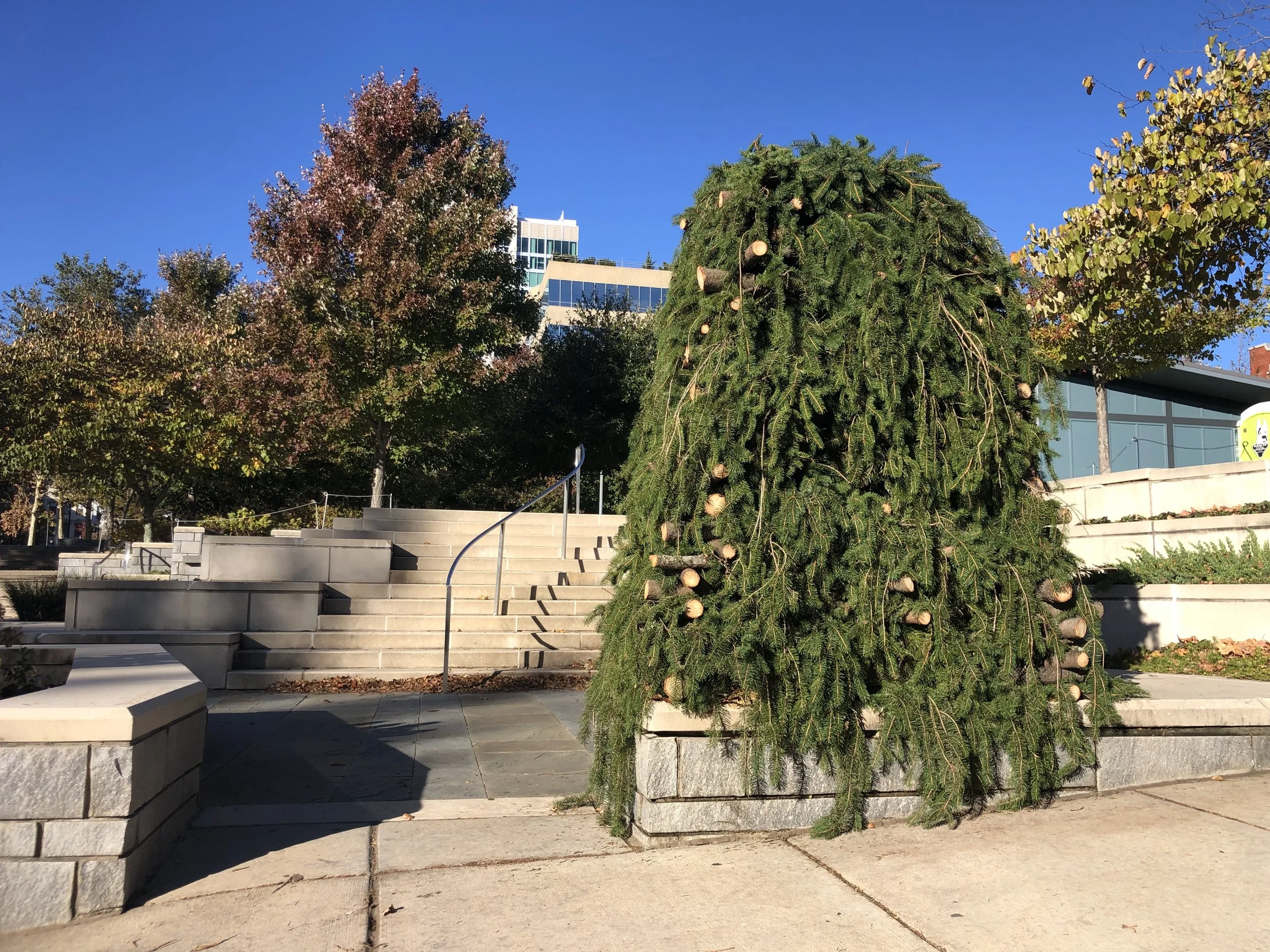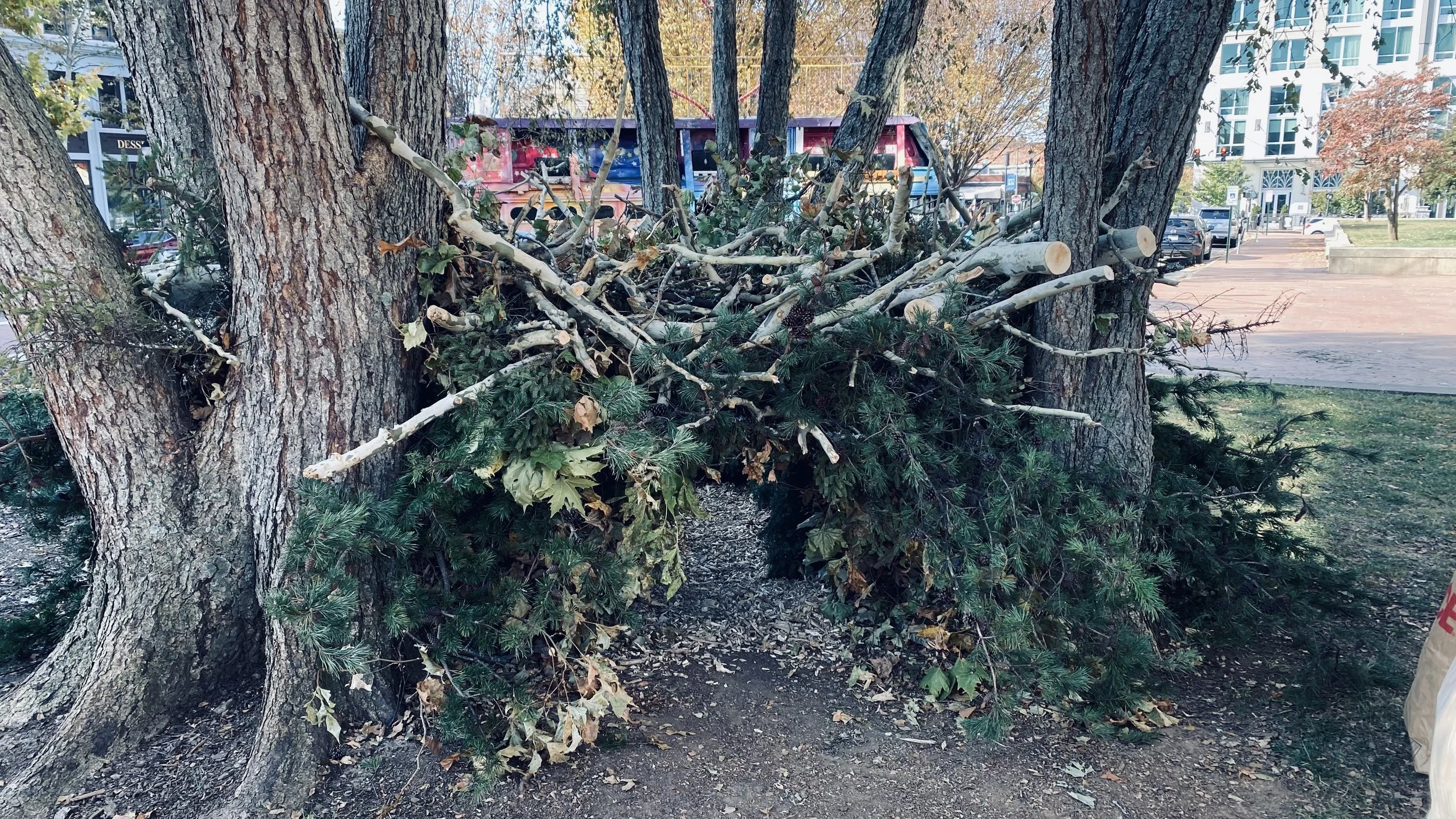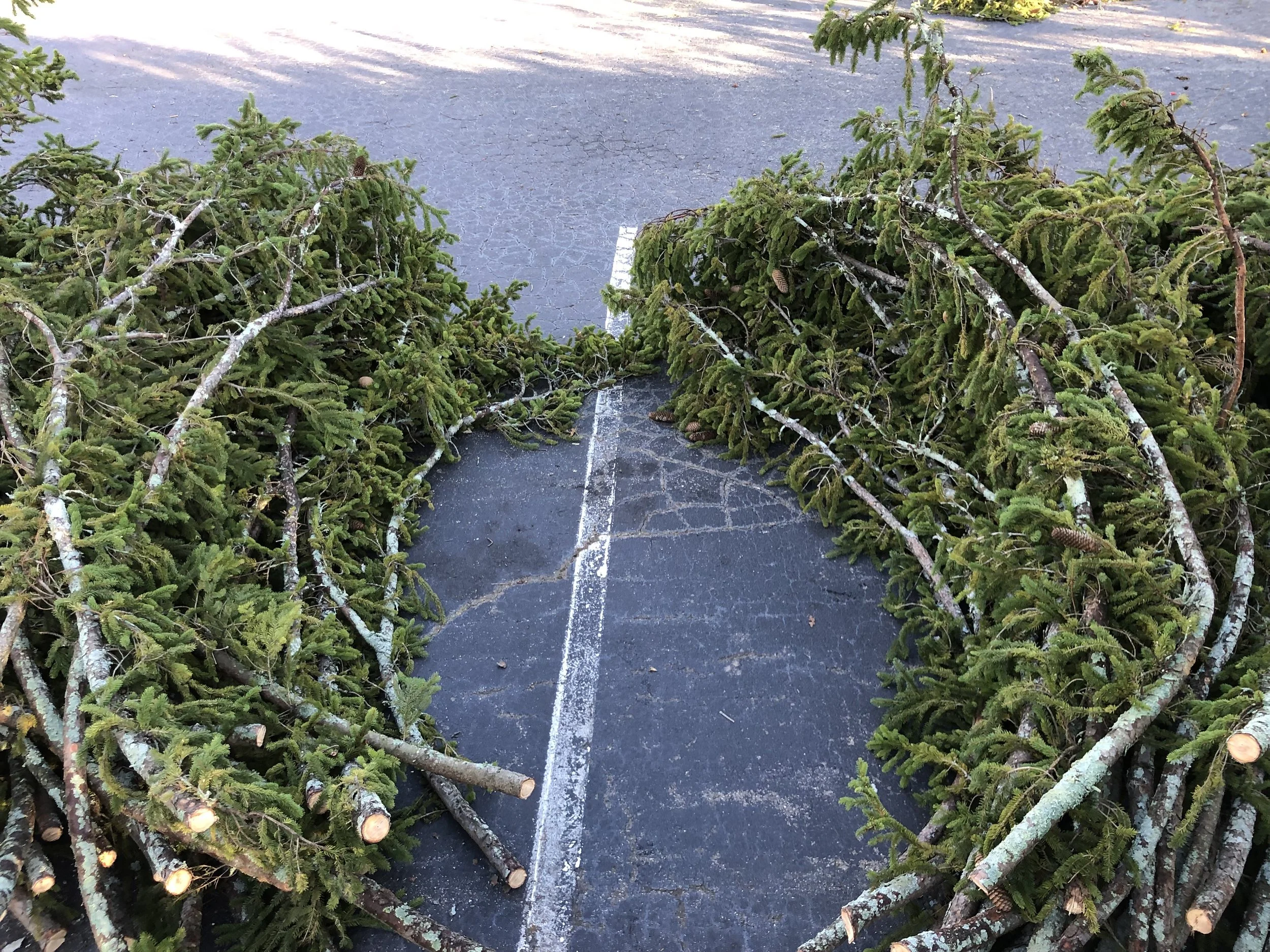 Tony Bayles used the large fallen evergreen in Pack Square as the foundation of the altar. This tree, which had been brought down by the hurricane's force, was repurposed to serve as a symbol of both loss and resilience. The design of the altar combined elements of natural beauty and the spiritual, with the tree providing a solemn yet profound connection to nature and the community.