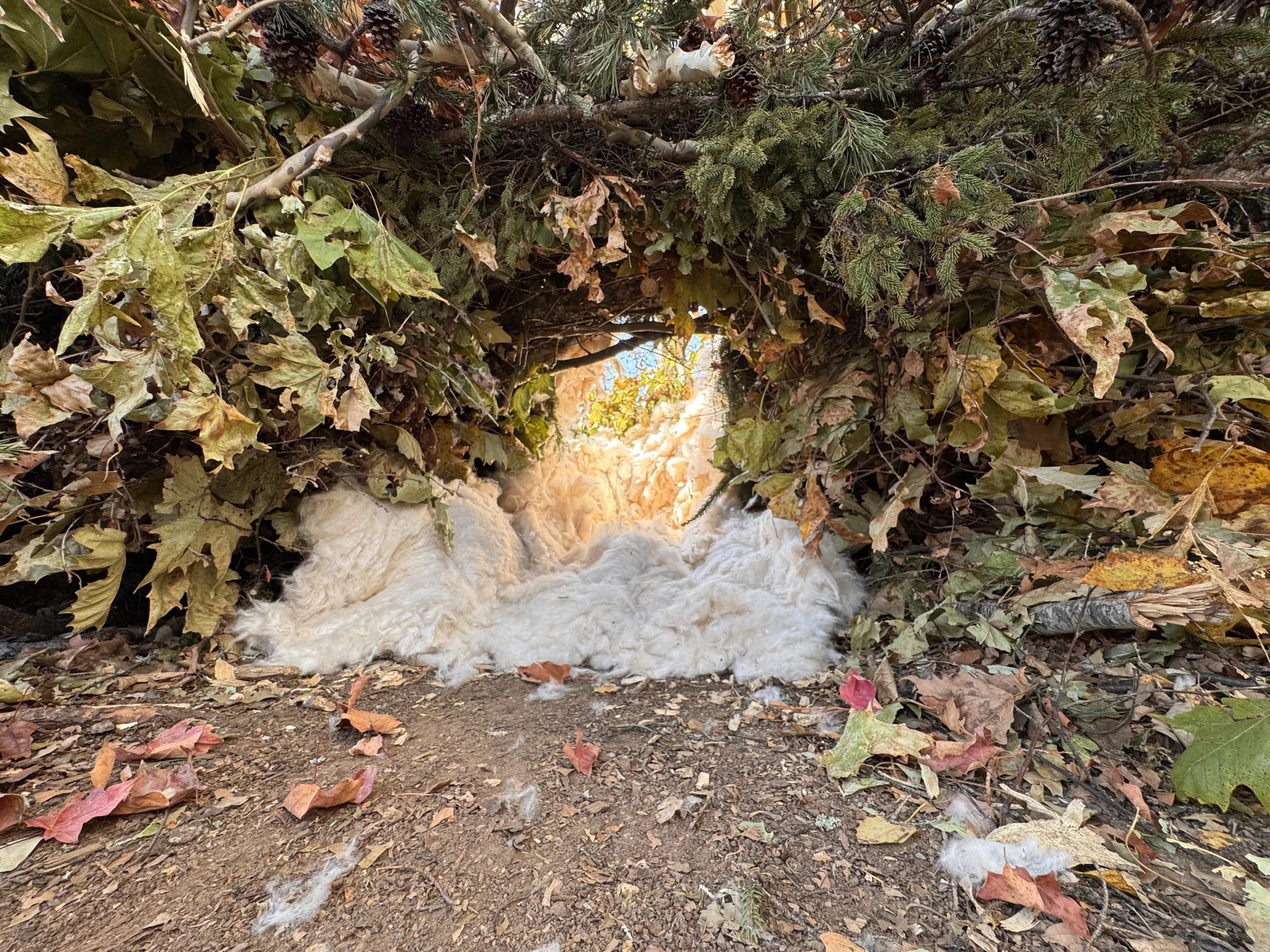 Crawl through the entrance at the back, It is lined with silk tree bean fiber. Go inside, act like an eaglet, and enjoy the serenity within.